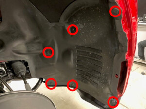 - Install the clips (x6) that attach the RH front wheel liner to the front fascia.