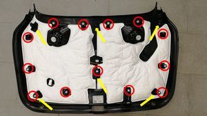 Install the locating pins (x6), clips (x12) and push clips (x2) that attach