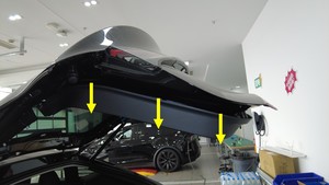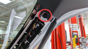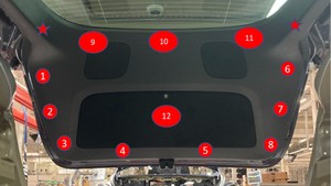 - Connect the connector (x1) at the left lower corner that attaches the liftgate lower trim to the liftgate.
