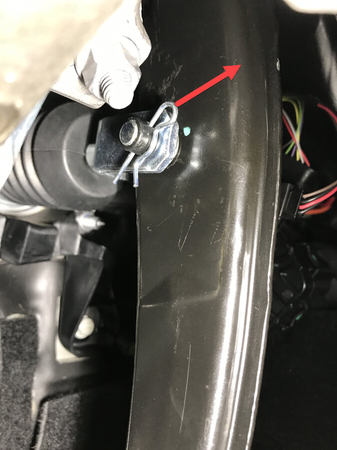 - Install the cotter clip to the clevis pin on the brake pedal assembly.
