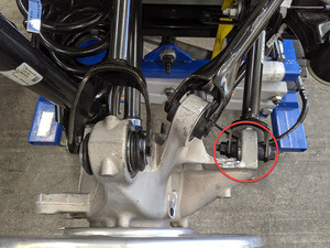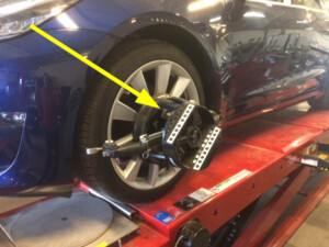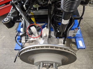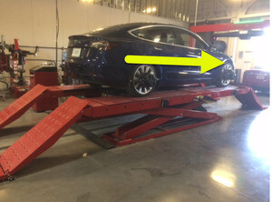 Measure from bottom of quarter panel to center of axle as a secondary check to make sure LH suspension is set to ride height