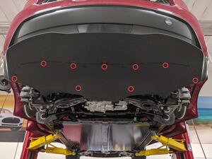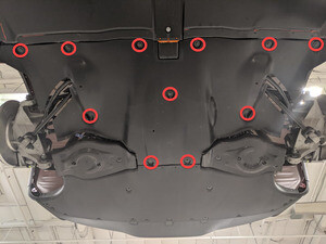Apply Loctite 222 onto mid aero shield bolts and install mid aero shield