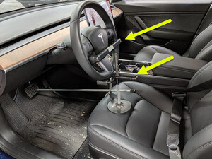 - Unlatch the driver door, place vehicle in park and remove steering wheel leveler and steering wheel holder