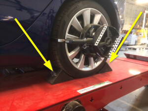 Pull vehicle forward and stop ~ 0.5 ft before turn plates to allow for rolling compensation