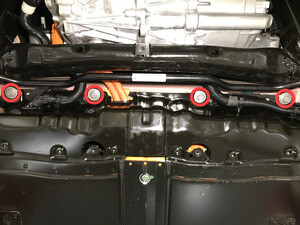 NoteMeasure the ride height 75mm inward of the HV battery ski hole at each corner, If using ballast bags, move the front seats as necessary to achieve ride height spec, See Service Manual for ride height specifications