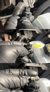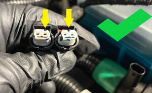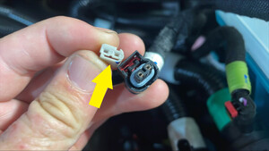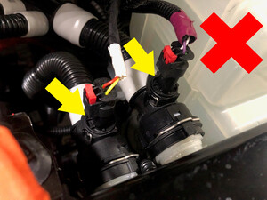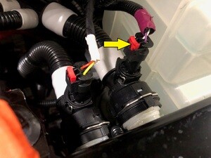 NoteHarness with purple tape connects to coolant temperature sensor closest to coolant bottle.