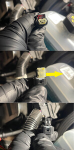 Note1x connector cover, If the new supermanifold connection does not fit onto the older style temp sensors then you need to swap the front connector cover, carefully shift cover to the right in order to release, do not damage connector.