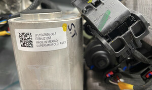 NoteDetermine the part number of the equipped supermanifold, if replacing a -A to -E (v1.0) with a -F (v1.1) then a manifold configuration change and replacement of supermanifold to HVAC A/C pentaline will also be required.