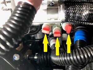 - Install three male plugs into the coolant ports at the front of the supermanifold.