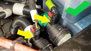 NoteInspect the type of coolant temperature sensors equipped, early production Model Y had a different styled temperature sensor, if you encounter an early revision temperature sensor then it is possible the new replacement supermanifold connections may not fit onto the old sensors, if this is the case, then the electrical connector cover must be swapped from the old supermanifold to the new replacement supermanifold, this will be done at a later step, if coolant temp sensors are the newer style then a rework is not required.