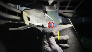 - Remove the clip that attaches the carpet to the instrument panel riser.