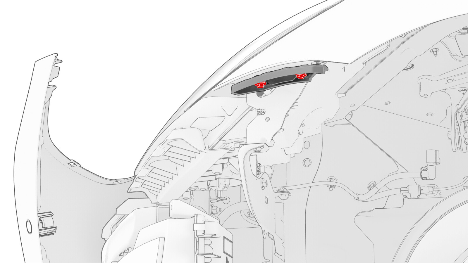 - Carefully pull aside the corner of the front fascia to gain access to the LH fascia side to fender bracket.