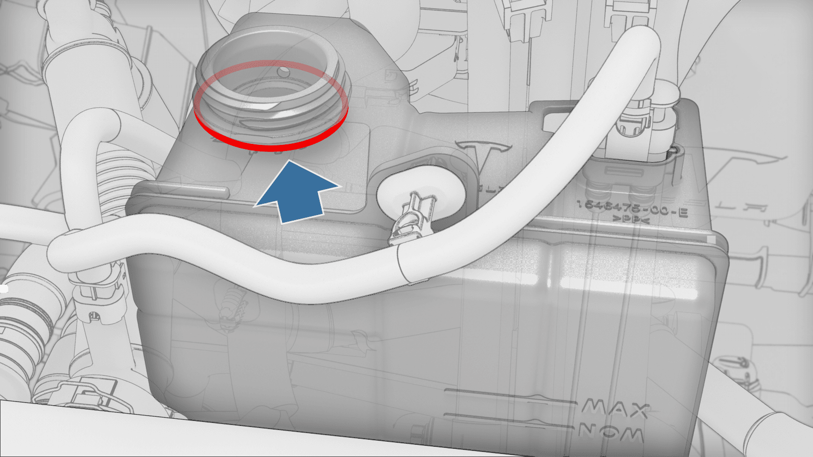 - Fill the coolant reservoir to the base of the filler neck as indicated.