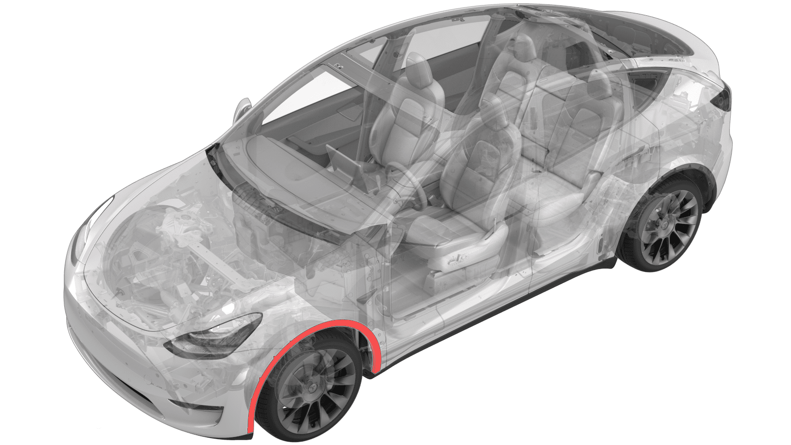 - Position the front fender garnish rear alignment tab into the rocker panel before installing the clips.