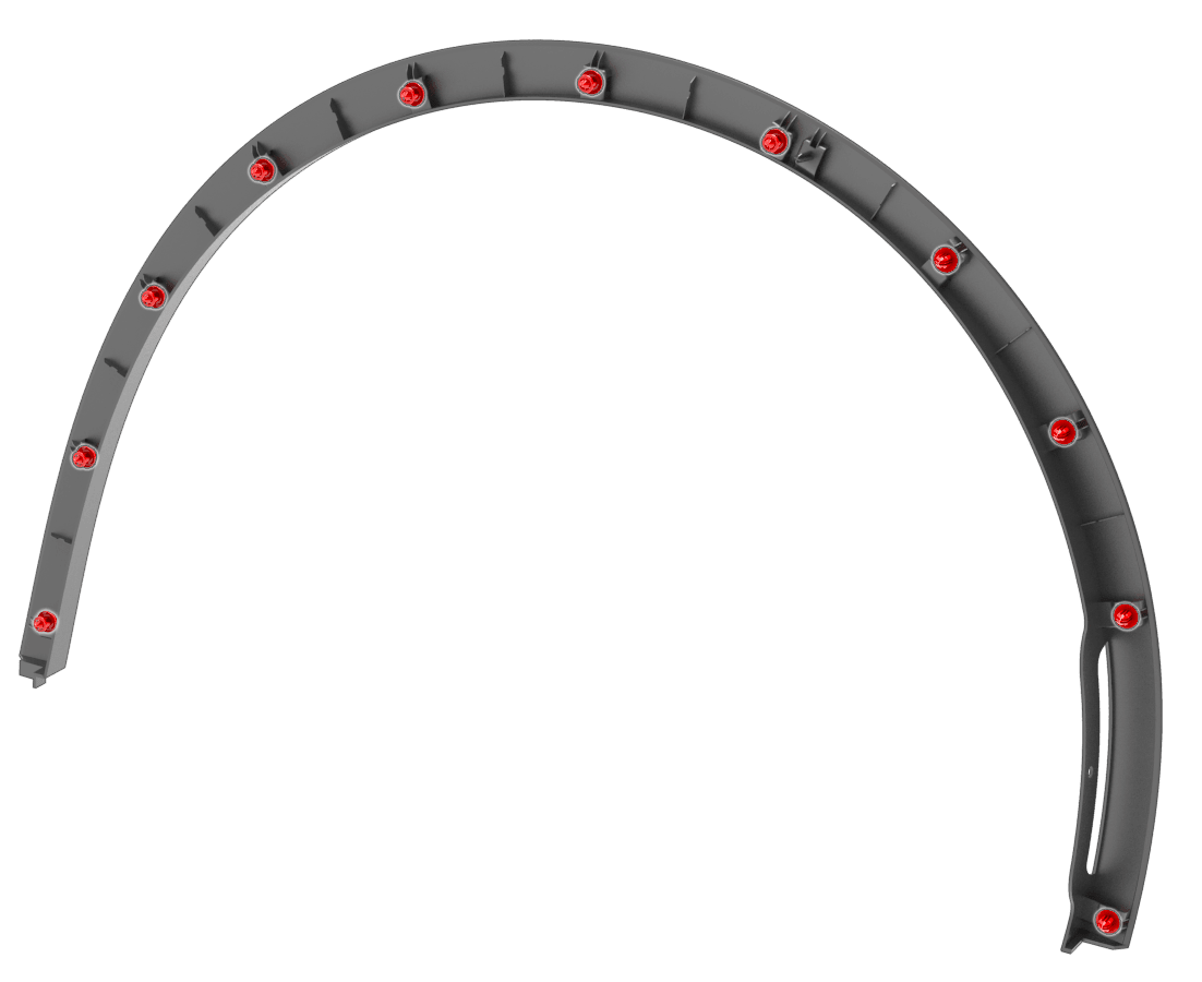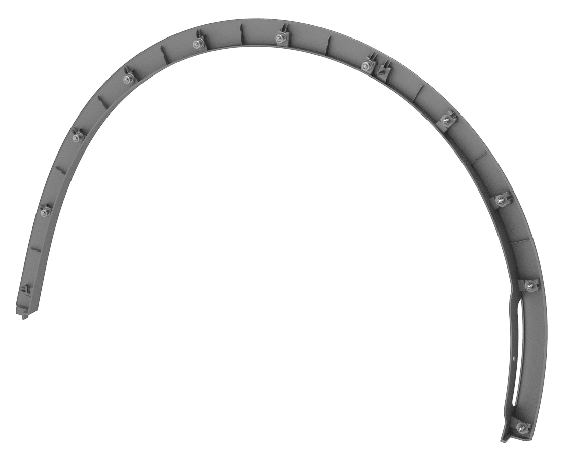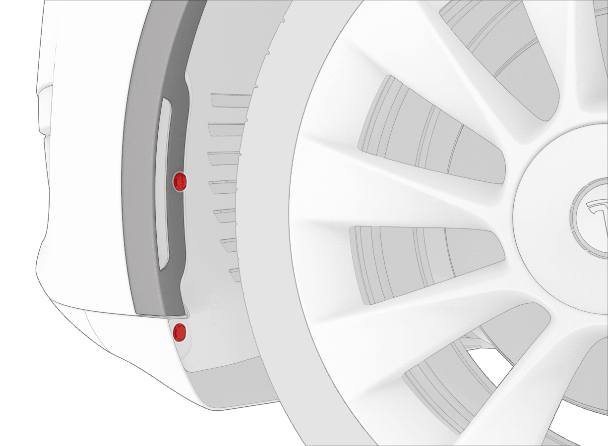 - Release the push clips (2x) that attach the LH front fender garnish to the front fascia.