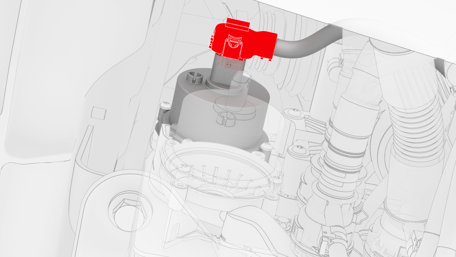 NotePull the red tab to release the connector lock, and then pull the connector to disconnect the connector.Tip: Apply masking tape to the electrical connector and label the tape with the pump location.