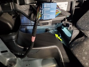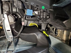 - Position the LH footwell cover into the vehicle, connect the electrical connectors (x2), and then secure the tabs (x3) that attach the cover to the vehicle.