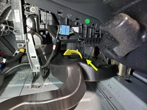 - Install the clips (x2) that attach the main 2ndor row floor duct to the HV battery.
