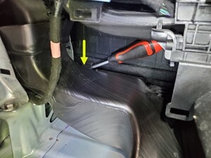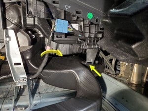 - Remove the clips (x2) that attach the main 2nd row floor duct to the vehicle.