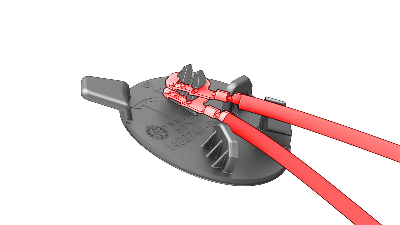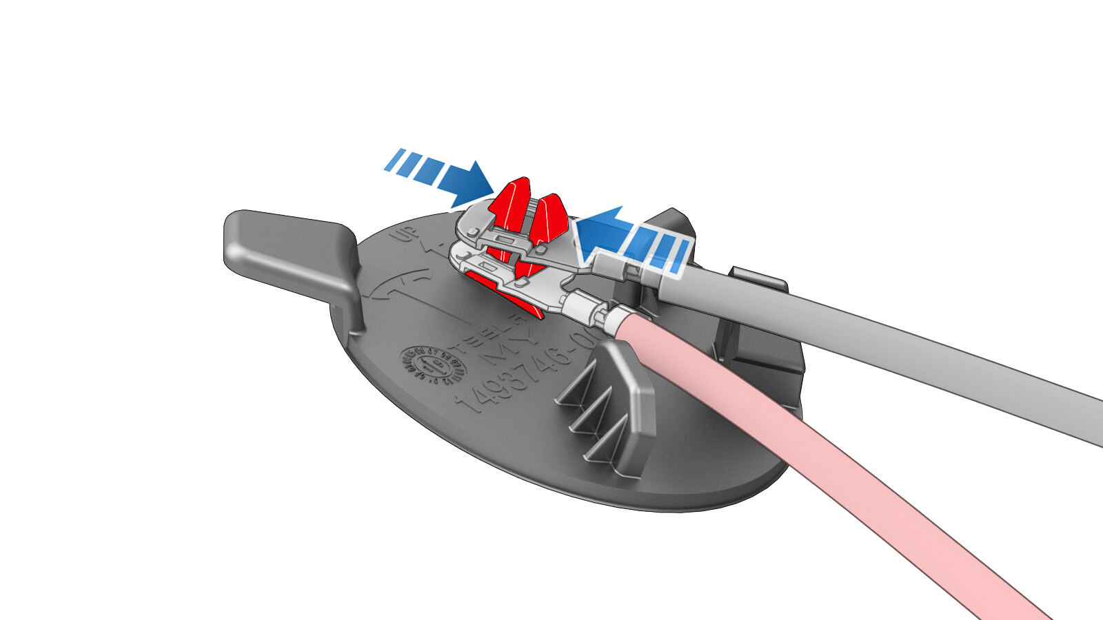 NoteGently sqeeze the retaining tabs together to remove the wires.NoteNote the color code when ordering new tow hook cover (1493746-XX-A)