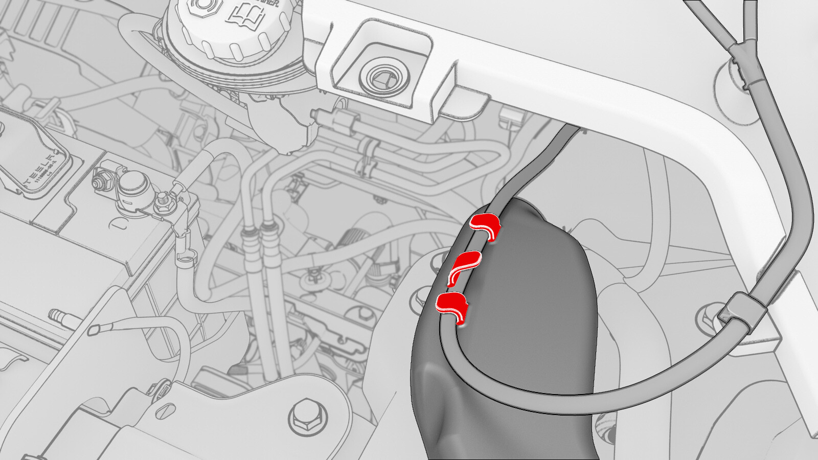 - Release the tabs that attach the washer hose to the washer tank neck, and then remove the washer tank neck from the vehicle.