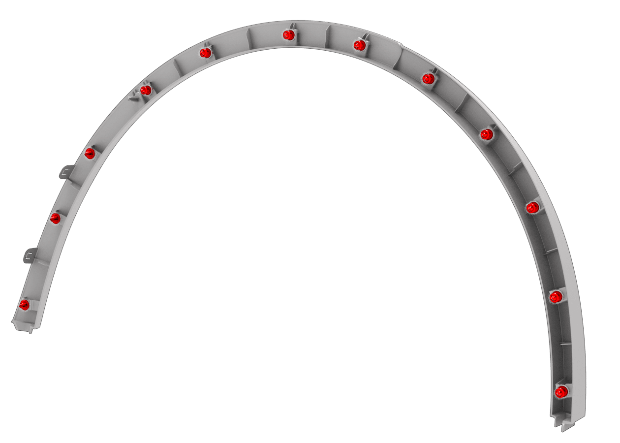 Once the rear fender garnish alignment tabs are installed, install the