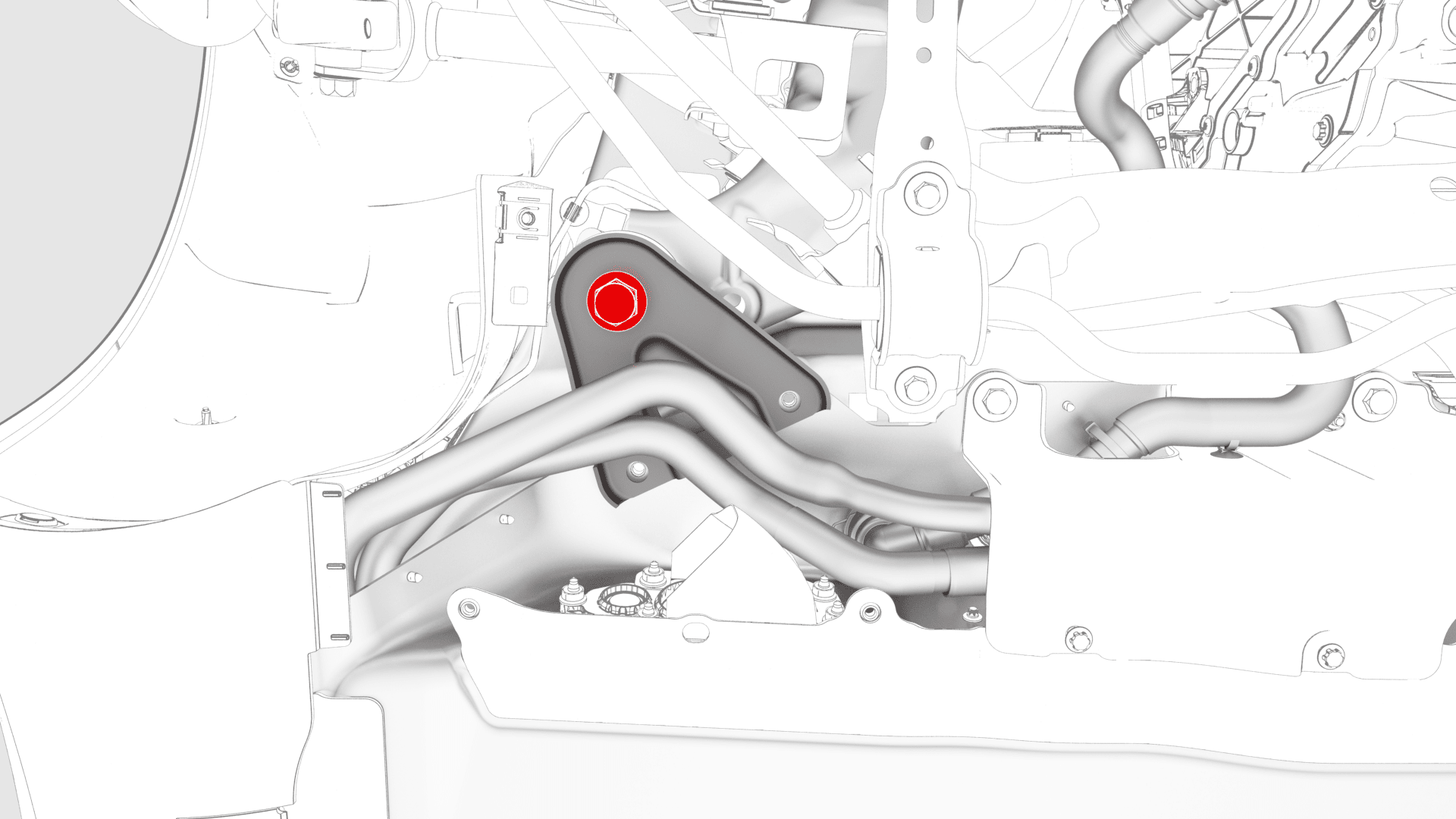 - Loosen the larger bolt that attaches the LH shear plate to the subframe, move the shear plate to its original position, and then hand-tighten the bolt.