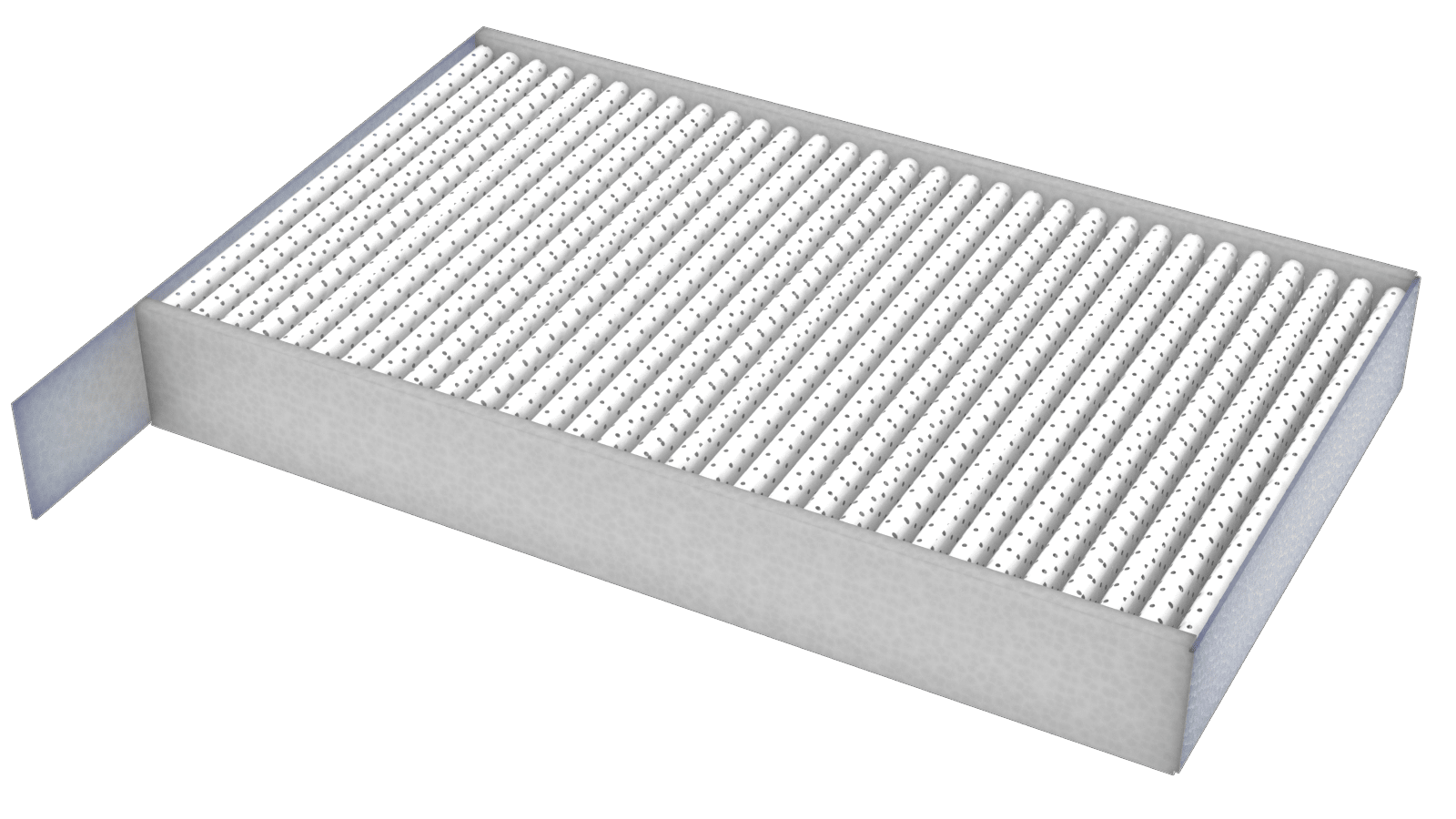 - Install the upper filter into the filter housing, with the arrows pointing to the rear of the vehicle, and then fold the filter tabs inward.