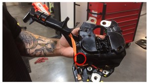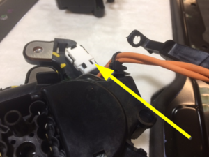 - Install the clip that secures the AC filter harness to the fast charge assembly.