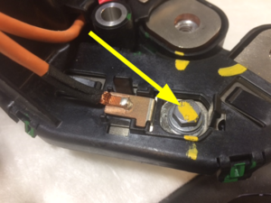 Remove the bolts (x2) and nut that secure the fast charge assembly to the