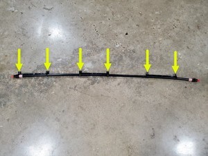 Position the powertrain return hose into the vehicle, and the secure the clamps (x6) and brackets (x6) that attach the hose to the vehicle.