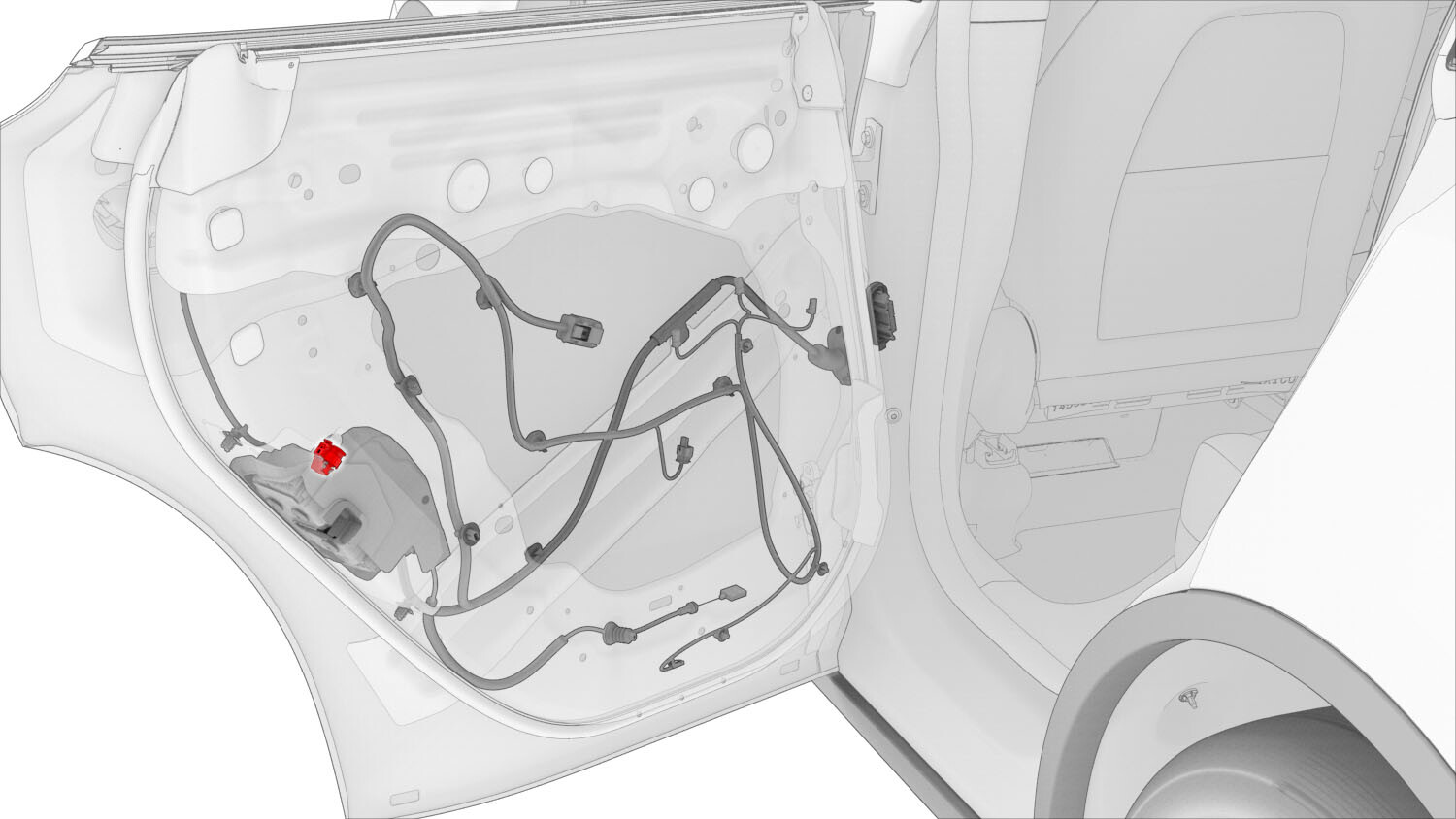 - Disconnect the LH rear door electrical harness from the LH rear door latch connector.