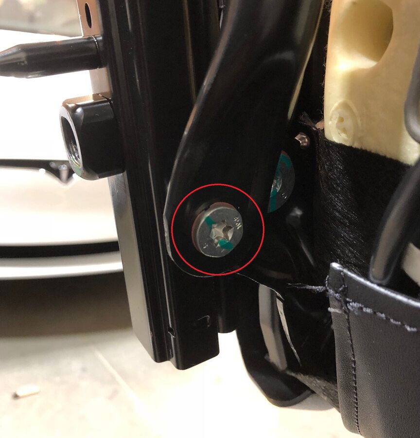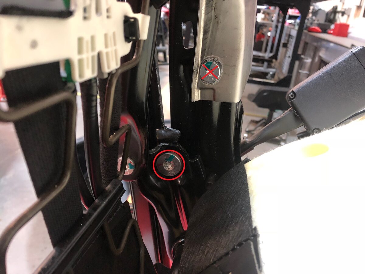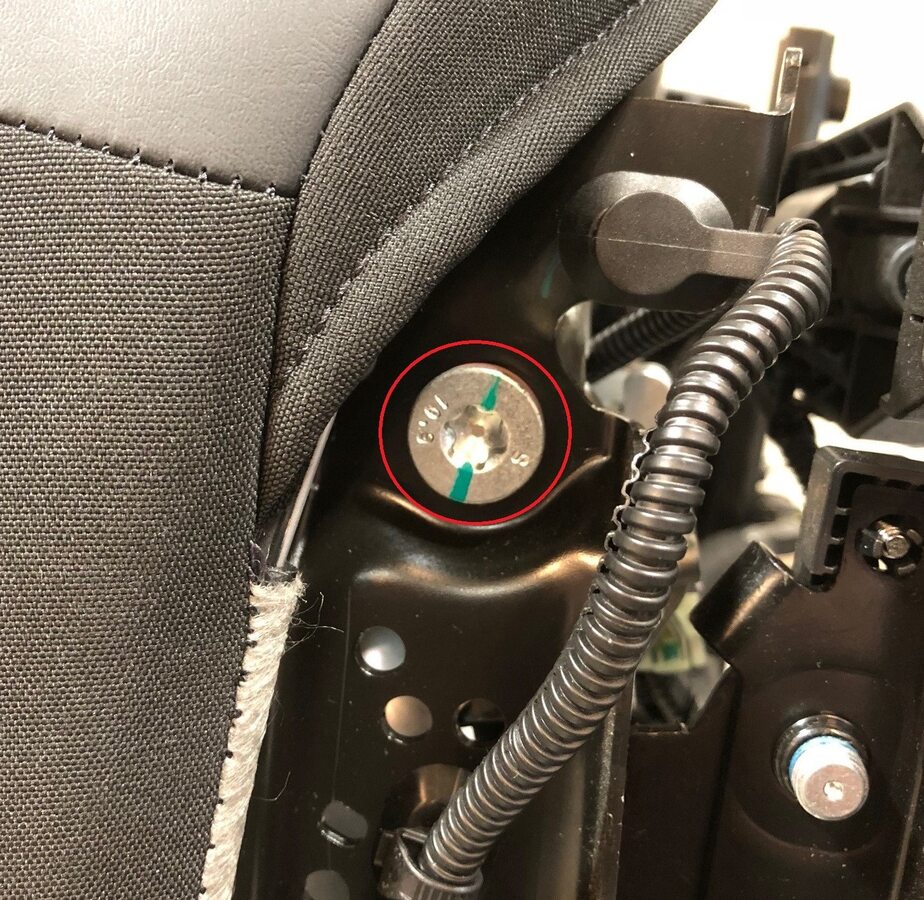 Install new bolts that attach the front passenger seat outer track to the seat