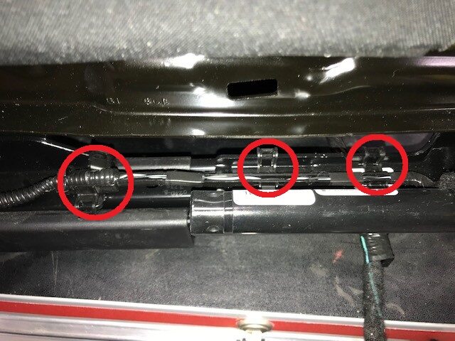 - Install seat belt pretensioner harness clips (x3).