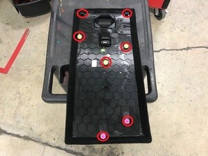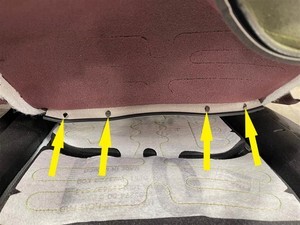 Note5x patch bolts, 11mm, 37 Nm, Install new patch bolts, Bottom seat bolts located behind main carpet, Torque in sequence; Outboard front -> Both inboard rear -> Outboard rear -> Inboard front