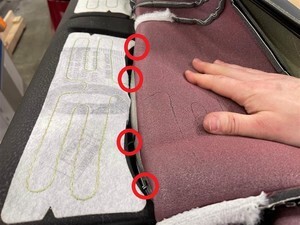NoteSeat pillar and sill trim tabs underneath seal