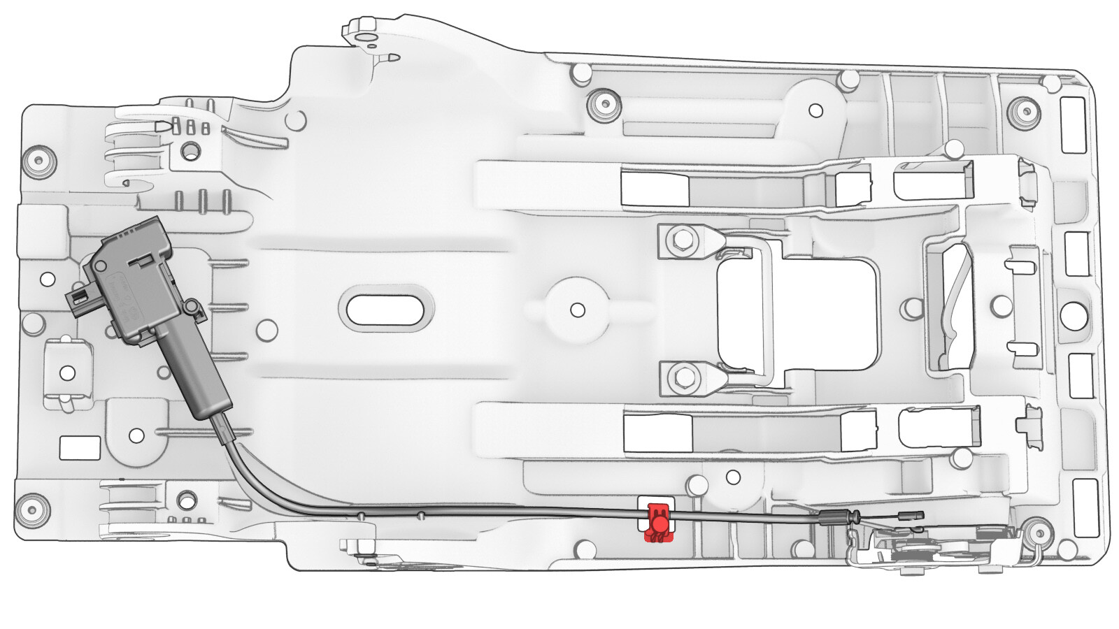- Release the clips (x2) that attach the center 2nd row latch actuator cable to the seatback closeout.