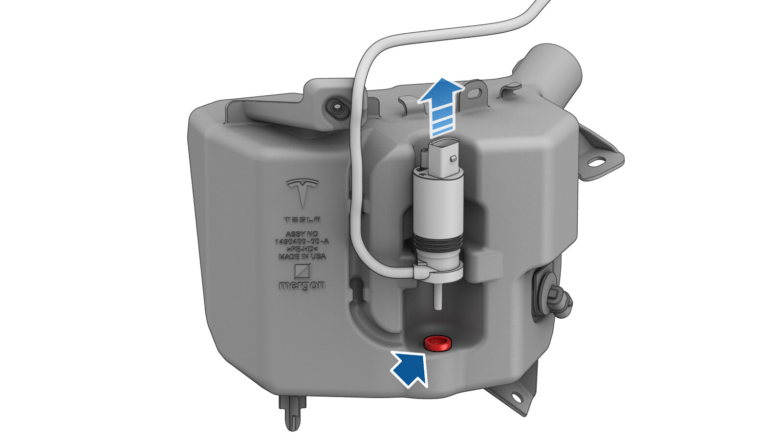 NoteLift the washer reservoir assembly up, and then rotate it counterclockwise to access the washer pump at the rear of the tank.