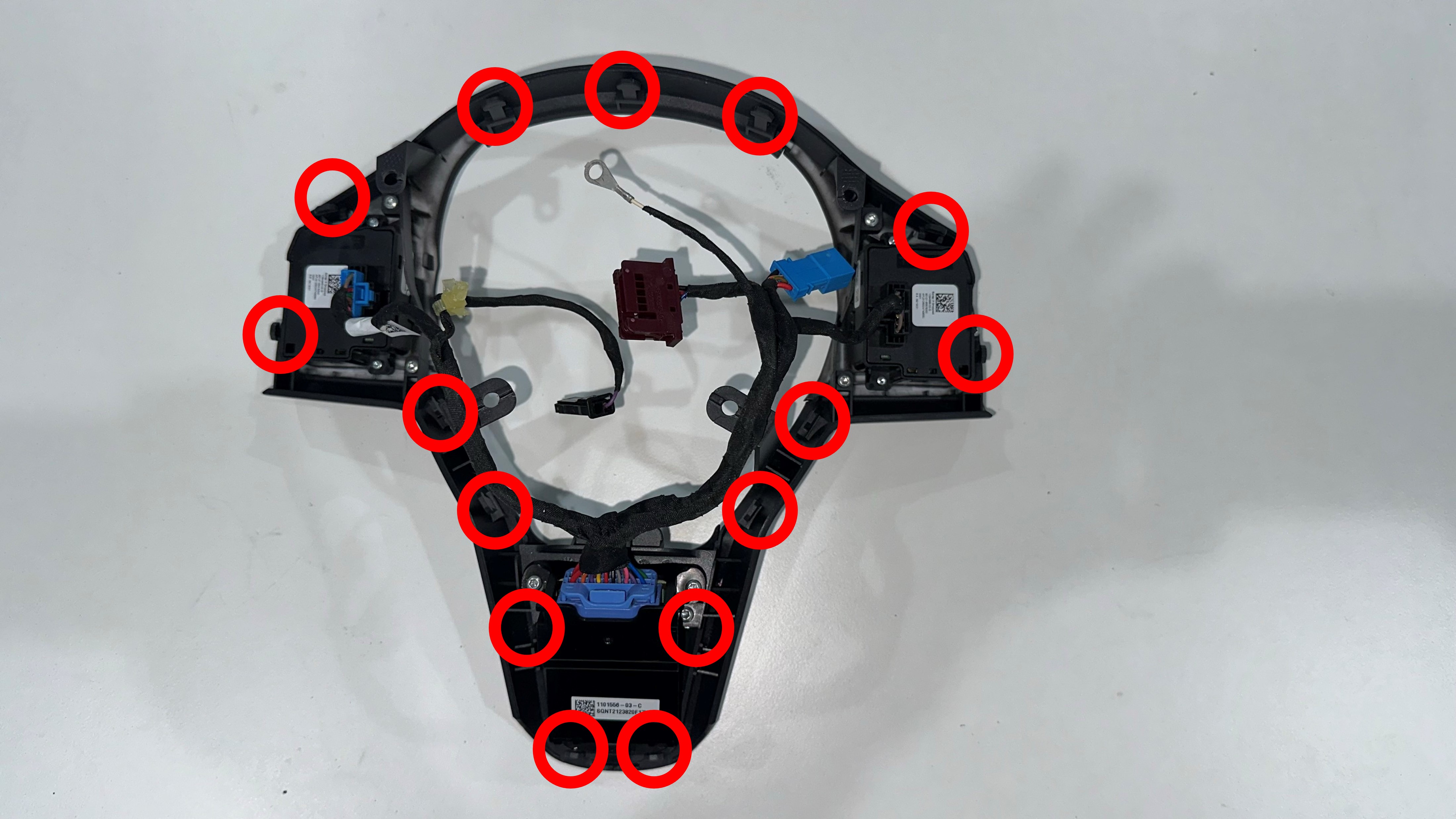 - Install the clips that attach the steering wheel bright surround to the steering wheel rim.