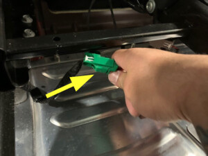 - Install the clip that attaches the 2R center buckle electrical connector to the LH 2nd row seat frame.