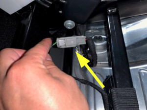 - Disconnect the logic electrical connector at the LH 2nd row seat frame.