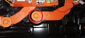- Remove the insulator cap from the HV battery shunt busbar nut.