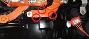 - Install the HV battery shunt busbar cover onto the HV battery shunt busbar, and then fasten the clips (x3) that attach the cover to the busbar.