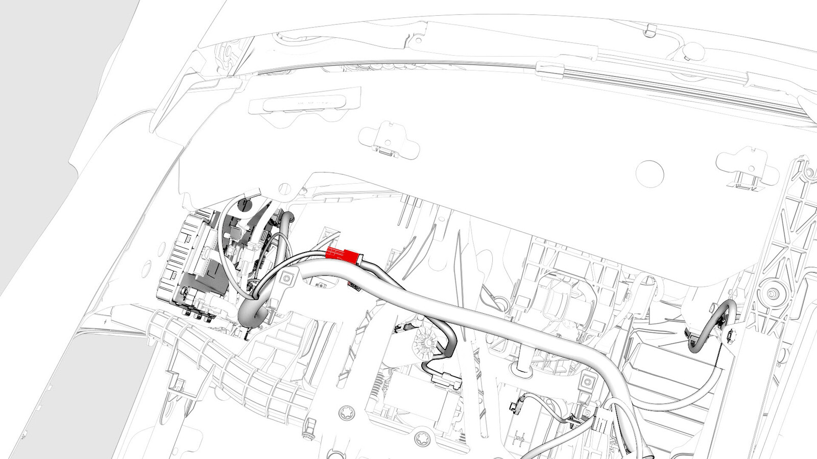 - Release the clip that attaches the electrical harness to the RH side of the cross car beam.