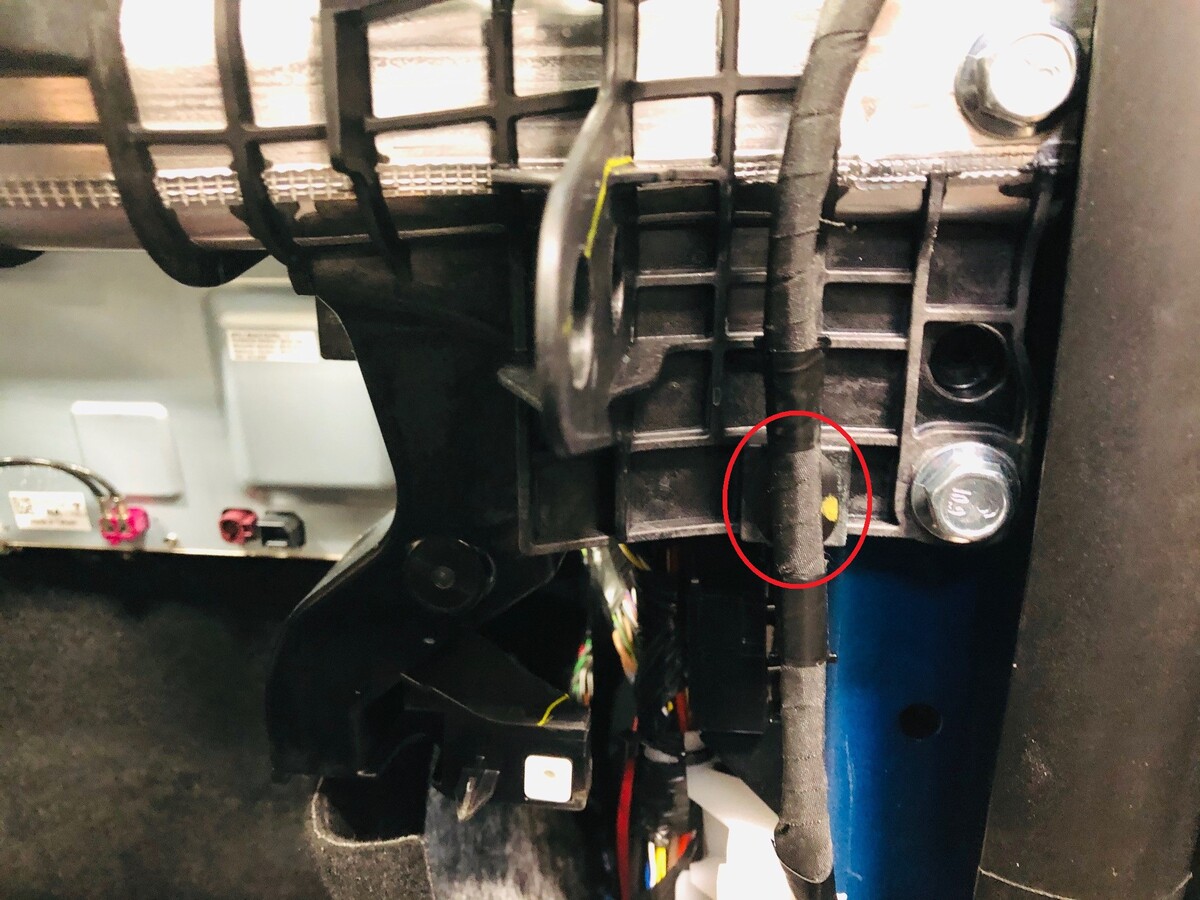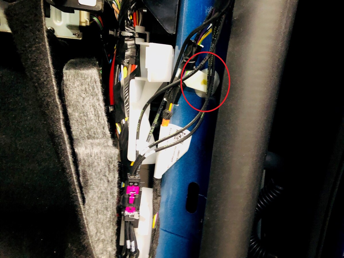 - Install the headliner harness clip onto the LH lower A-pillar.