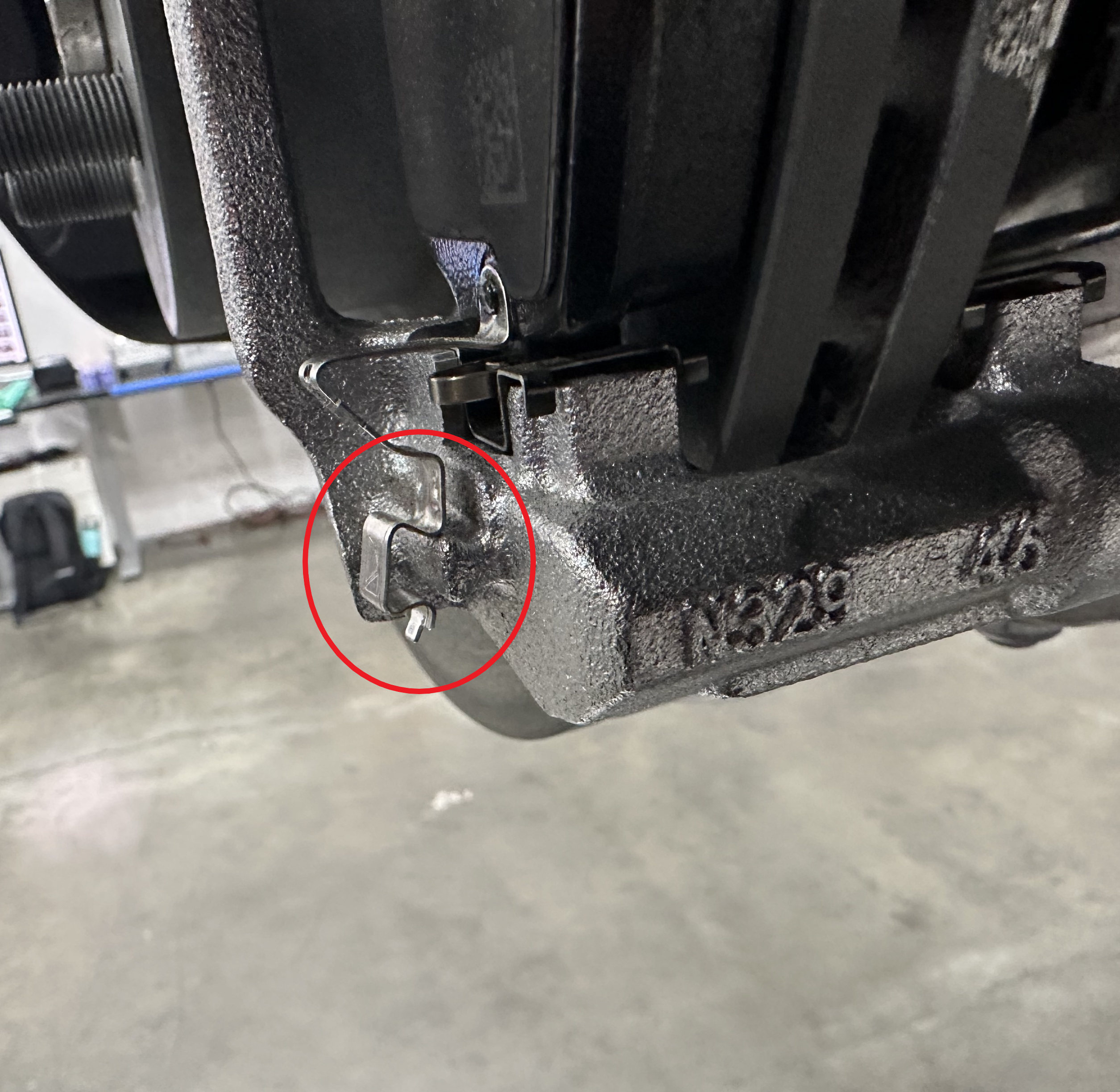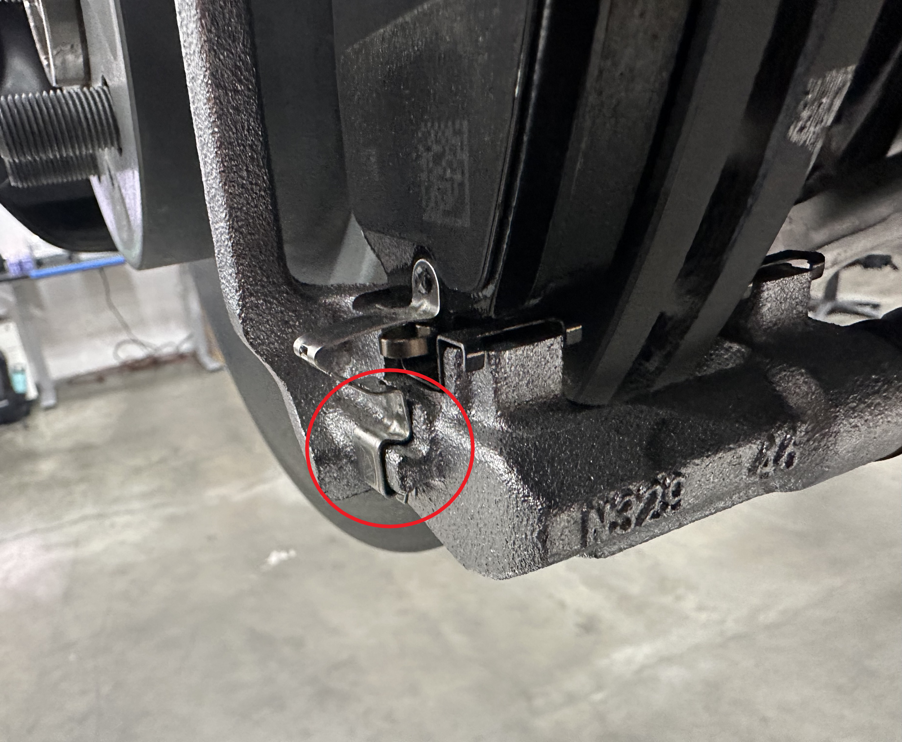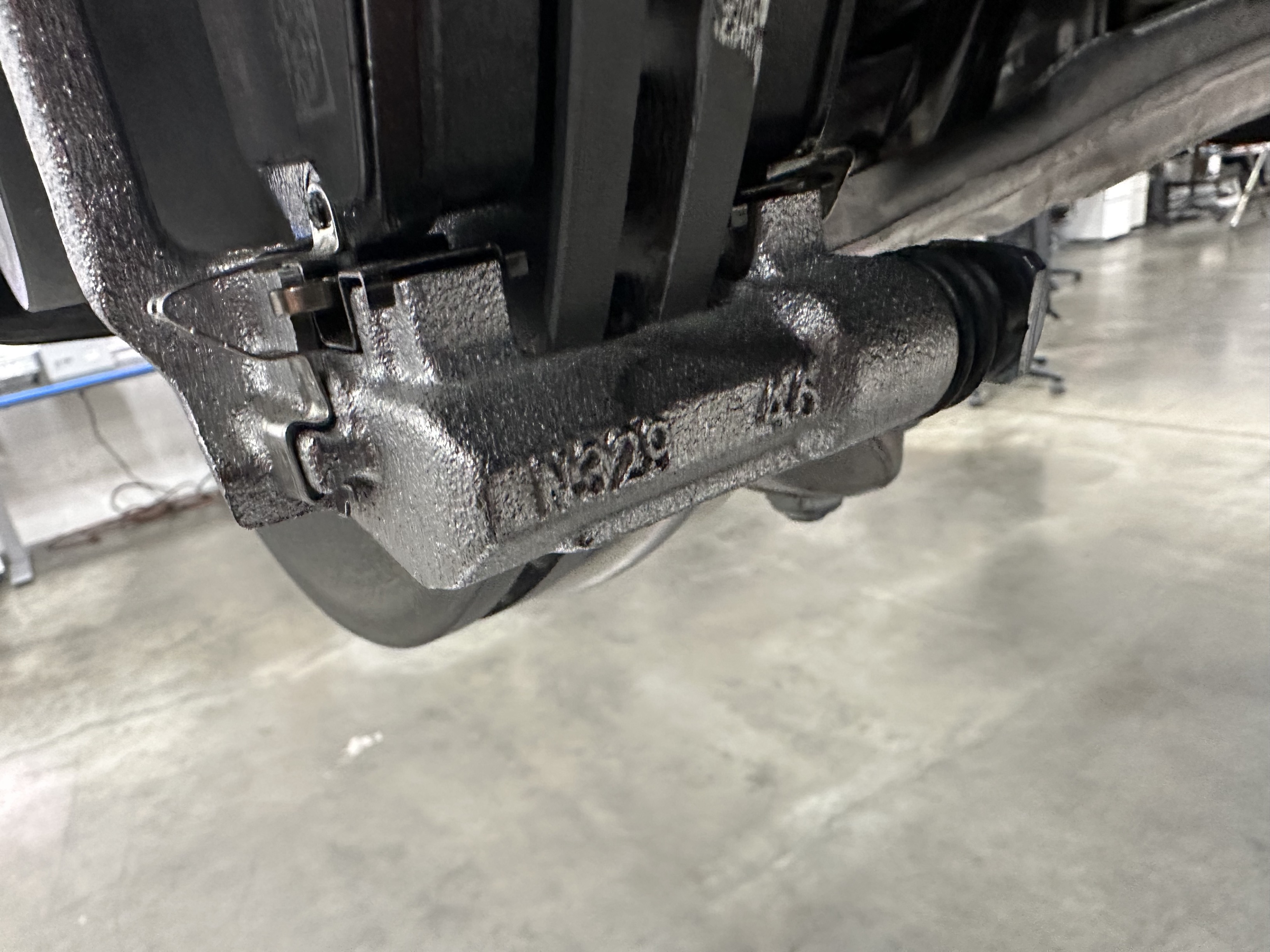 - Clean the LH caliper bracket with a wire brush.