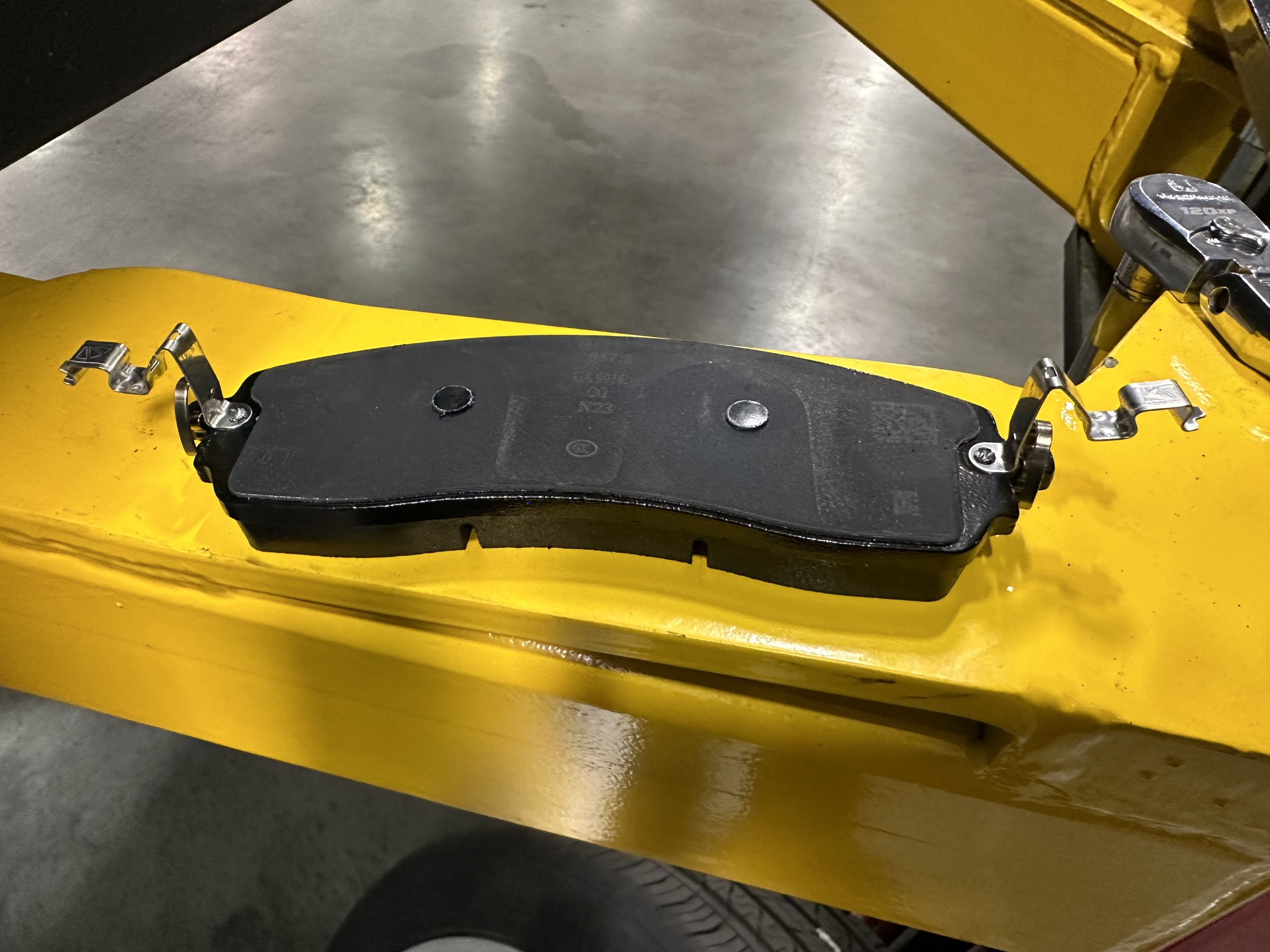 - Repeat step 1 through step 3 to install the RH front brake pads.