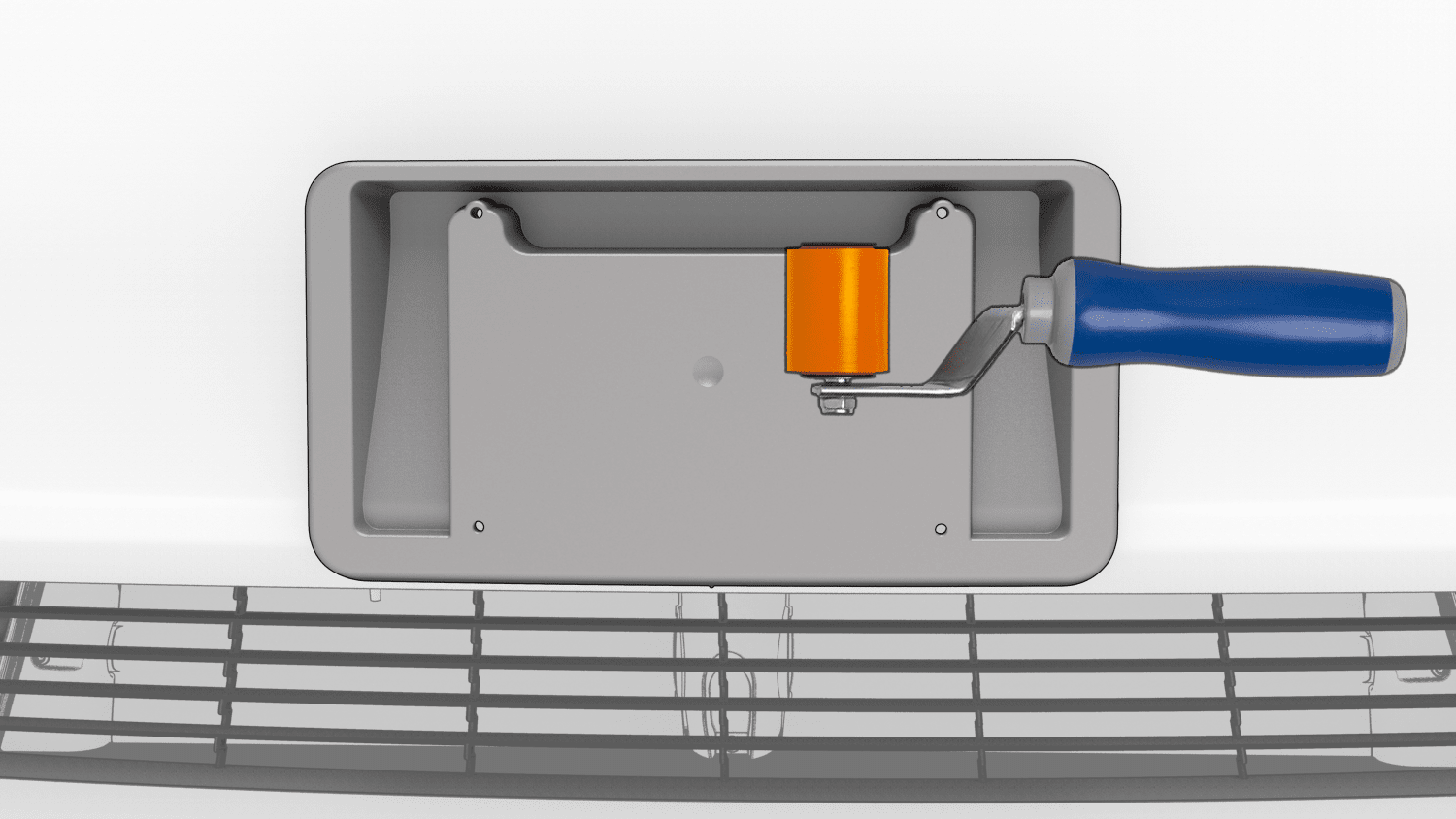 - Hold the license plate bracket horizontally and align the locator tab at the bottom lip of the bracket with the center rib of the fascia grille.