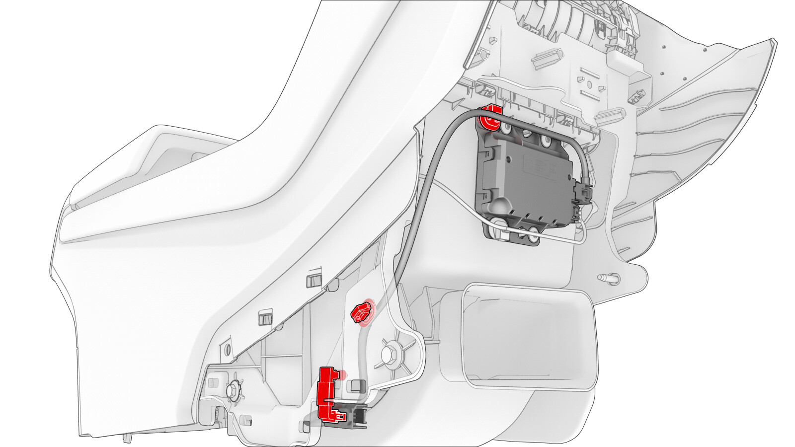 - Disconnect the electrical wiring harness connector from the USB hub.