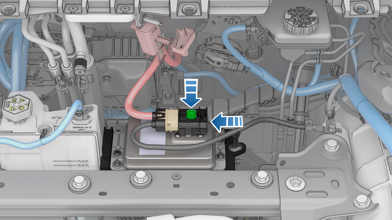 - If the vehicle is equipped with a Li-ion LV auxiliary battery, disconnect the LV battery connector from the LV battery.
